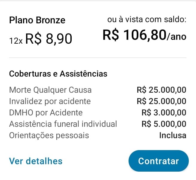 No plano prata, o valor destinado para assistência na morte e invalidez por acidente é até 2 vezes maior do que o plano bronze. Por outro lado, o plano prata custa duas vezes mais caro.