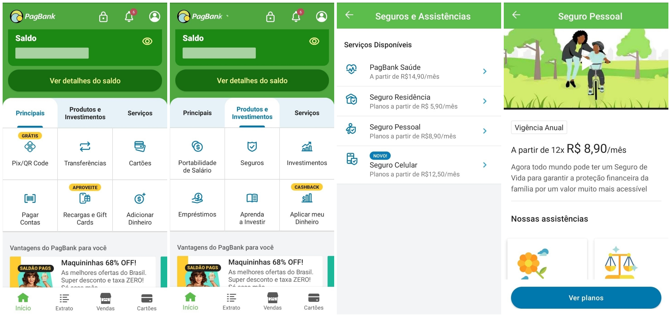 Além do seguro pessoal, o PagSeguro oferece outros tipos de produtos, conheça cada um abaixo.