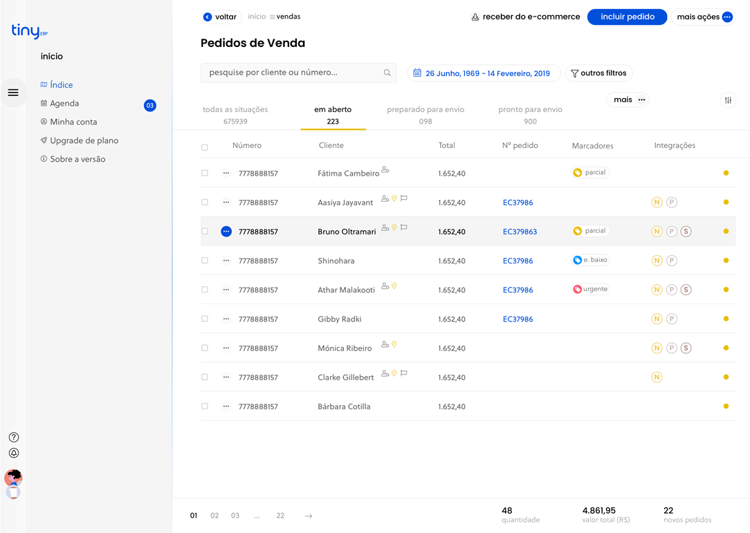 Além disso, os pedidos dos seus clientes de todos os marketplaces ficam centralizados em um único painel de vendas, sem a necessidade de acessar outras páginas.