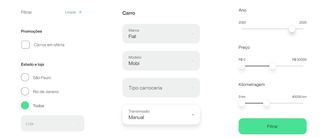 • Por último, você coloca o ano, o preço que você está disposto a pagar pelo veículo e a quilometragem rodada.